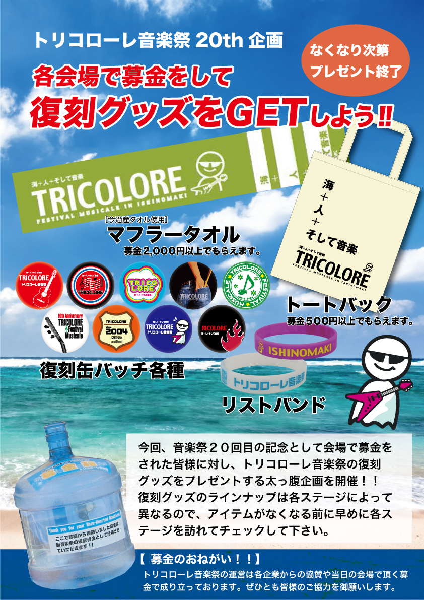 今年で20回目を迎えるトリコローレ音楽祭では、節目の年を記念して各ステージで「復刻グッズプレゼント企画」を実施します!